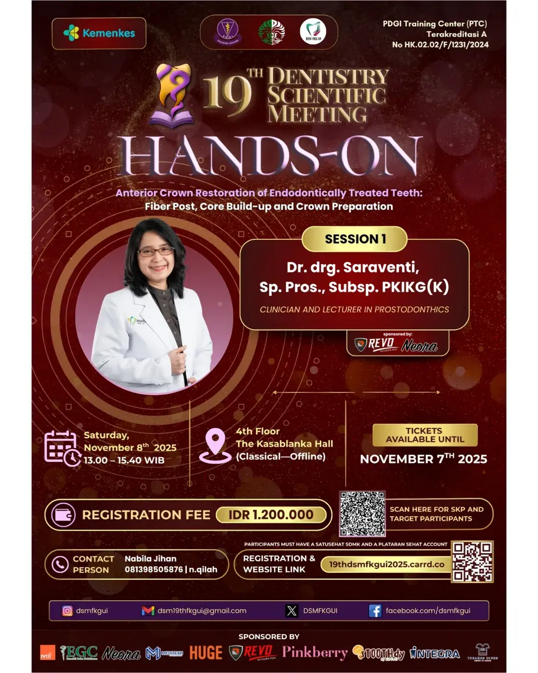 Kegiatan ini ditujukan untuk mahasiswa/i kedokteran gigi serta dokter gigi, baik dari dalam maupun luar negeri, sebagai sarana pengembangan kompetensi berkelanjutan yang berorientasi pada peningkatan mutu layanan. Selain itu, kegiatan ilmiah ini juga selaras dengan tujuan besar pendidikan kedokteran gigi, yaitu mencetak tenaga kesehatan yang unggul, adaptif, dan berorientasi pada keselamatan serta kepuasan pasien.