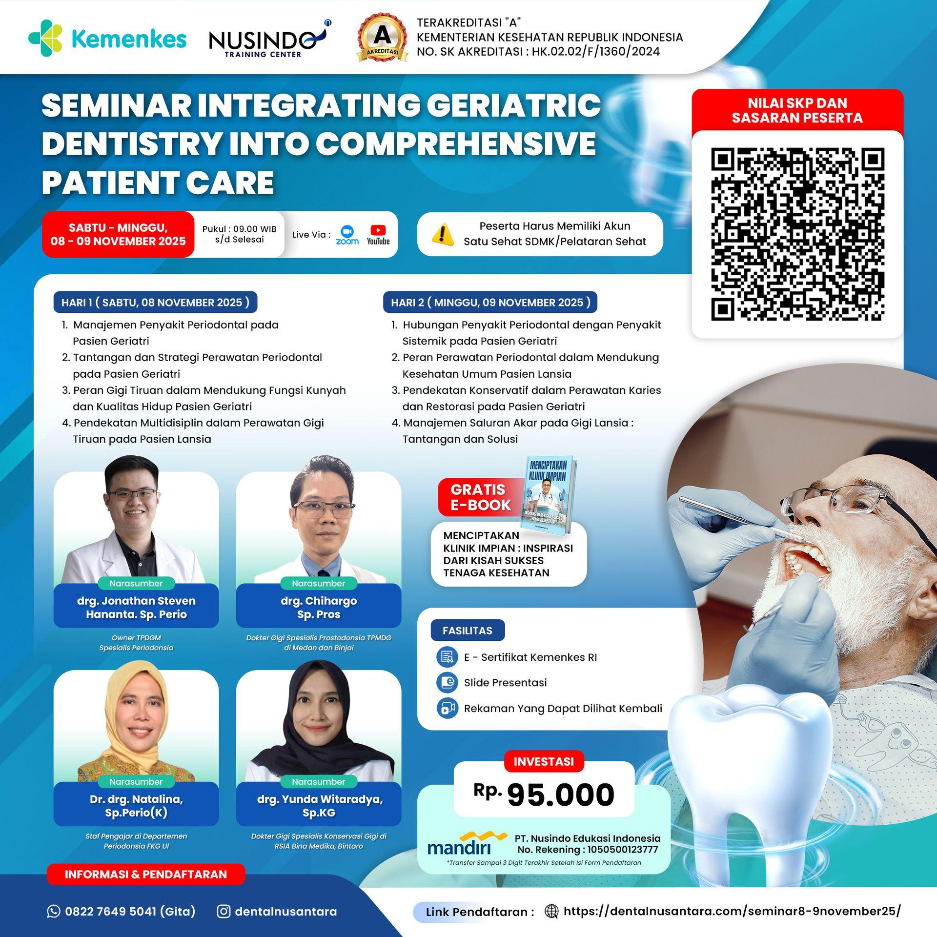 Seiring bertambahnya usia harapan hidup masyarakat, jumlah populasi lansia di seluruh dunia terus meningkat secara signifikan. Kondisi ini membawa implikasi besar dalam bidang kesehatan, termasuk kesehatan gigi dan mulut. Lansia kerap menghadapi berbagai masalah kesehatan gigi seperti kehilangan gigi, penyakit periodontal, xerostomia, hingga kesulitan dalam penggunaan gigi tiruan. Oleh karena itu, perawatan gigi pada kelompok usia lanjut memerlukan pendekatan khusus yang berbeda dengan pasien dewasa muda. Geriatric dentistry atau kedokteran gigi geriatri hadir sebagai cabang ilmu kedokteran gigi yang berfokus pada diagnosis, pencegahan, dan perawatan masalah kesehatan mulut pada lansia. Integrasi aspek geriatri dalam praktik kedokteran gigi menjadi penting agar perawatan tidak hanya berfokus pada aspek klinis semata, tetapi juga mempertimbangkan kondisi sistemik, psikologis, dan sosial pasien lanjut usia. Pendekatan ini memastikan bahwa layanan kesehatan gigi dapat diberikan secara menyeluruh dan sesuai dengan kebutuhan pasien. Dalam praktik klinis sehari-hari, dokter gigi sering kali menghadapi tantangan kompleks pada pasien lansia, seperti adanya penyakit sistemik (diabetes, hipertensi, penyakit jantung), penggunaan obat-obatan jangka panjang, serta keterbatasan fisik yang memengaruhi kebersihan mulut. Kondisi ini menuntut adanya integrasi yang baik antara kedokteran gigi dengan bidang kesehatan lain. Interdisiplin menjadi kunci utama agar perawatan gigi tidak hanya bersifat kuratif, tetapi juga preventif dan rehabilitatif dengan mempertahankan kualitas hidup pasien. Selain itu, kesadaran masyarakat dan tenaga kesehatan mengenai pentingnya perawatan gigi pada lansia masih relatif rendah. Banyak pasien lansia menganggap bahwa kehilangan gigi adalah hal wajar seiring pertambahan usia. Padahal, kesehatan gigi dan mulut yang terjaga berperan penting dalam mendukung fungsi mastikasi, nutrisi, komunikasi, serta kualitas hidup secara keseluruhan. Oleh karena itu, edukasi dan penguatan layanan geriatri dalam bidang kedokteran gigi perlu lebih ditingkatkan.
