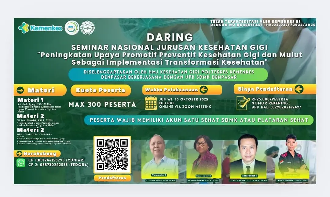 Sejalan dengan agenda Transformasi Kesehatan yang dicanangkan Kementerian Kesehatan RI, upaya promotif dan preventif menempati posisi strategis dalam menurunkan angka kesakitan dan meningkatkan derajat kesehatan masyarakat. Transformasi kesehatan tidak hanya berfokus pada kuratif, tetapi menekankan pentingnya pencegahan, peningkatan literasi kesehatan, serta pemberdayaan masyarakat agar lebih peduli dan mandiri dalam menjaga kesehatannya, termasuk kesehatan gigi dan mulut.