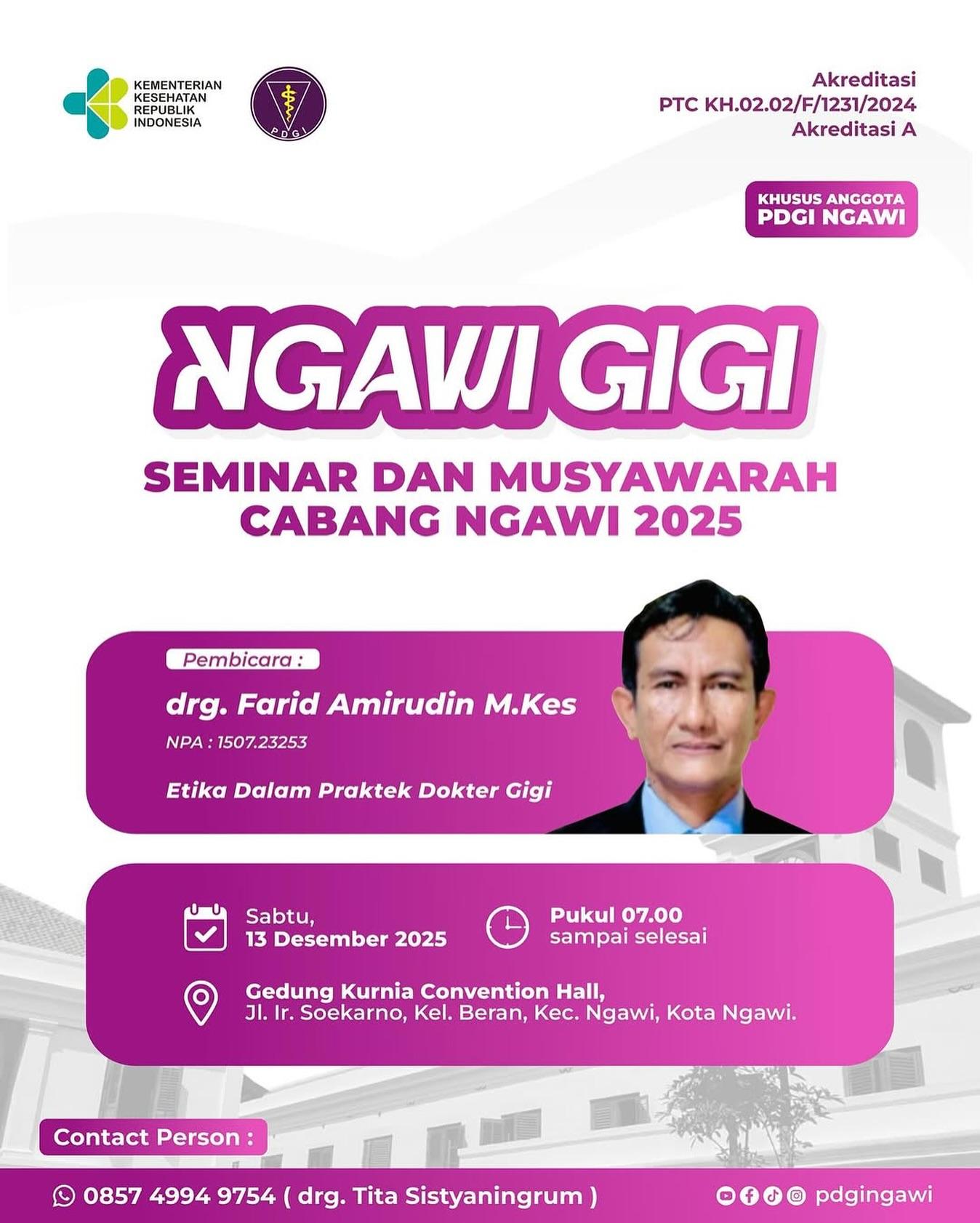 Seiring perkembangan zaman, tantangan etika dalam praktik kedokteran gigi semakin kompleks. Munculnya era digital, kompetisi layanan kesehatan, serta meningkatnya kesadaran hukum di masyarakat menuntut dokter gigi untuk semakin memahami dan menerapkan etika dalam setiap tindakan profesional. Pelanggaran terhadap etika, sekecil apa pun, dapat berdampak pada hilangnya kepercayaan pasien, sanksi organisasi profesi, bahkan konsekuensi hukum. Oleh karena itu, diperlukan suatu kegiatan ilmiah berupa seminar yang membahas secara mendalam mengenai etika dalam praktik dokter gigi. Seminar ini diharapkan menjadi sarana edukasi, refleksi, dan penguatan komitmen bagi para dokter gigi dalam menjaga martabat profesi serta memberikan pelayanan terbaik kepada masyarakat, sesuai dengan Kode Etik Kedokteran Gigi Indonesia (KEKG).