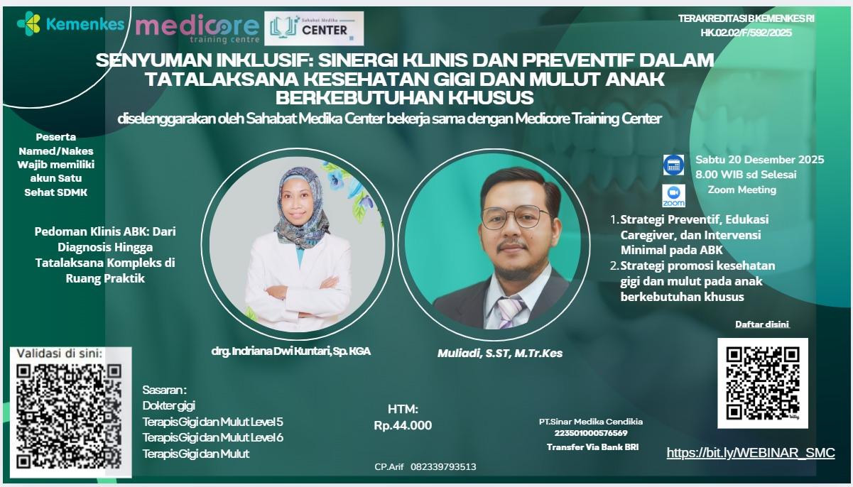 Diperlukan pendekatan komprehensif yang tidak hanya berfokus pada perawatan kuratif di klinik, tetapi juga pada strategi preventif yang kuat di rumah dan komunitas. Kolaborasi antara Dokter Gigi Spesialis Anak (Sp.KGA) sebagai ahli tatalaksana klinis kompleks, dengan Terapis Gigi dan Mulut sebagai ujung tombak edukasi dan pencegahan, menjadi kunci sukses untuk memberikan layanan yang inklusif dan efektif bagi pasien ABK.