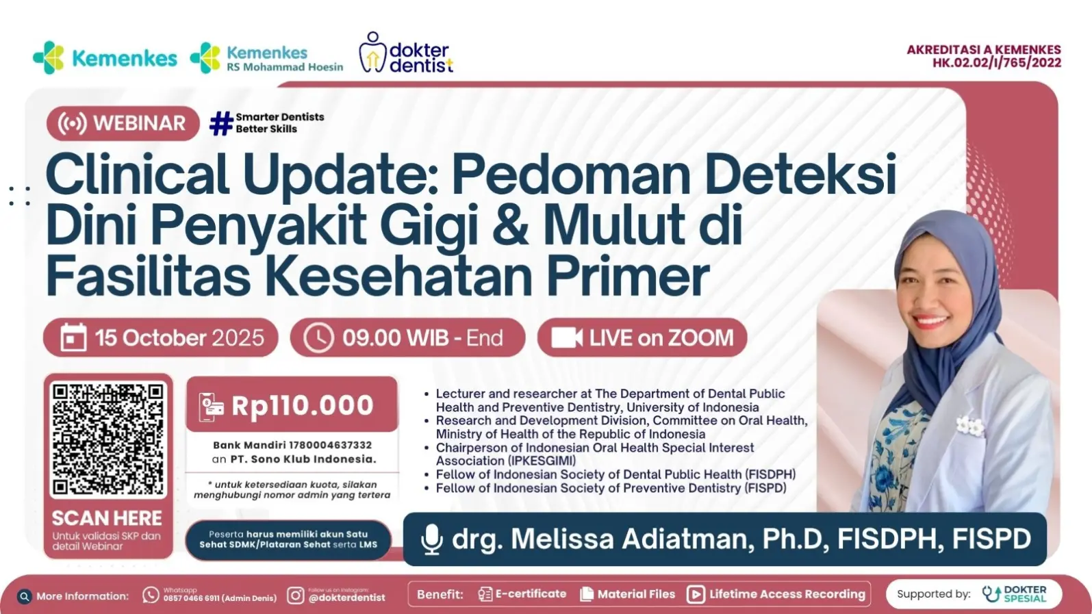 Berdasarkan Laporan World Health Organization (WHO) tentang Status Kesehatan Gigi dan Mulut tahun 2022, tercatat sekitar 3,5 miliar orang di dunia (hampir setengah dari populasi global) mengalami penyakit gigi dan mulut. Hasil Survei Kesehatan Indonesia (SKI) 2023 menunjukkan prevalensi penyakit gigi dan mulut pada penduduk usia ≥ 3 tahun mencapai 56,9%. SKI 2023 juga melaporkan adanya penurunan rata-rata indeks Decay, Missing, Filled-Teeth (DMF-T) pada seluruh kelompok umur dibandingkan dengan hasil Riskesdas 2018. Meski demikian, kondisi kesehatan gigi dan mulut di Indonesia masih membutuhkan perhatian serius. Beberapa kelompok usia, yakni 3–4 tahun, 5 tahun, serta > 35 tahun, masih masuk dalam kategori indeks DMF-T tinggi hingga sangat tinggi. Ironisnya, dari jumlah penduduk yang mengalami masalah gigi dan mulut, hanya 11,2% yang benarbenar mencari perawatan medis untuk mengatasinya (SKI, 2023).Sejumlah penelitian juga menunjukkan bahwa intervensi pencegahan, baik untuk karies maupun penyakit periodontal, jauh lebih efisien dari sisi pembiayaan. Deteksi dini kanker mulut pun terbukti cost-effective, terutama bila dilakukan pada populasi berisiko tinggi usia 30 tahun ke atas. Semakin cepat penyakit gigi dan mulut teridentifikasi, semakin rendah angka morbiditas dan mortalitas yang ditimbulkannya. Oleh karena itu, integrasi layanan kesehatan gigi (termasuk deteksi dini) ke dalam pelayanan kesehatan primer sangat penting. FKTP berperan strategis sebagai pintu masuk utama masyarakat, baik untuk memberikan rujukan ke FKTL maupun melaksanakan deteksi dini pada populasi umum maupun berisiko tinggi. Untuk mendukung hal tersebut, penguatan kapasitas FKTP diperlukan, serta pedoman nasional deteksi dini penyakit gigi dan mulut harus disosialisasikan sebagai acuan di seluruh Indonesia (Kemenkes RI, 2025).