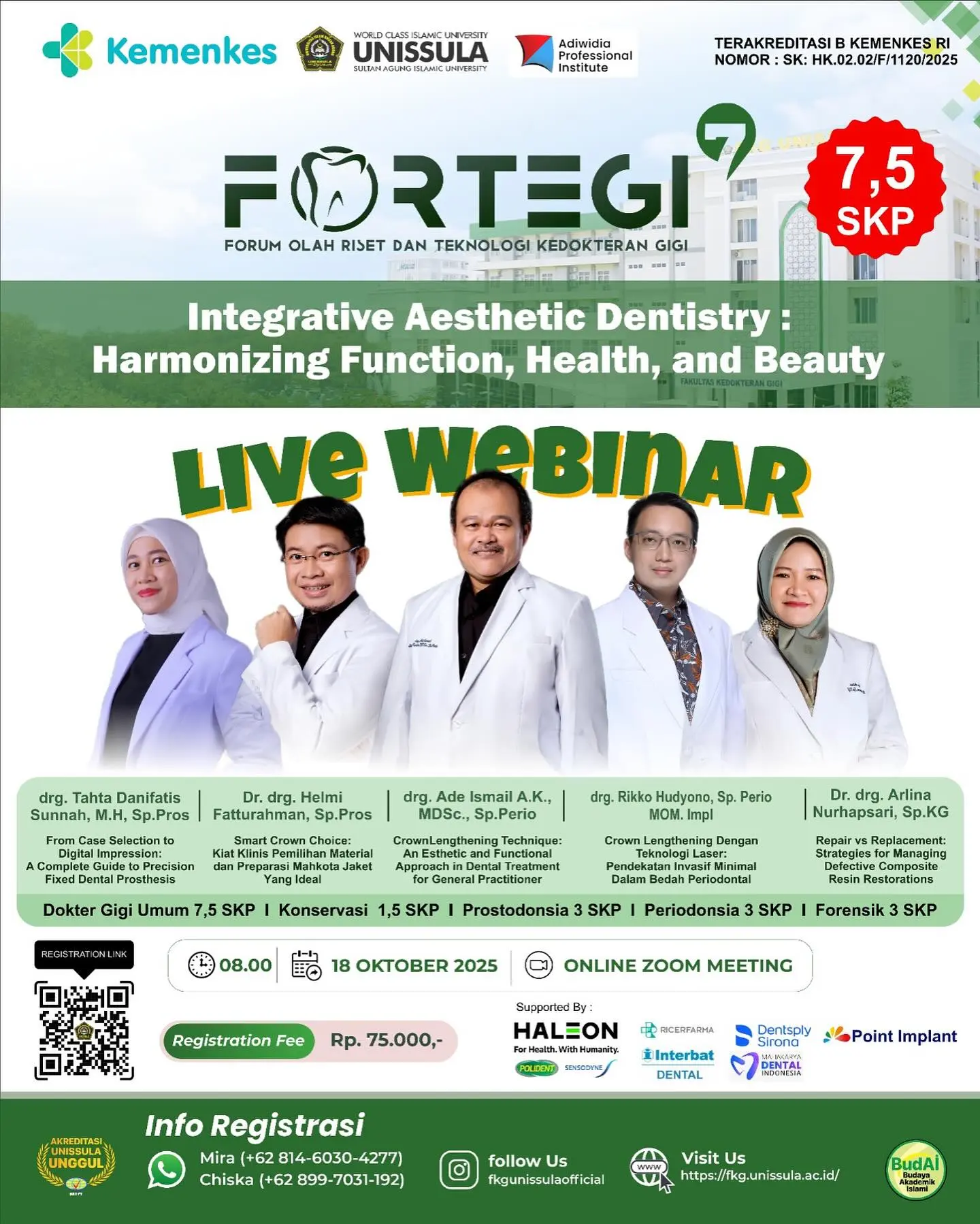 Perkembangan ilmu kedokteran gigi saat ini menempatkan estetika bukan hanya sebagai aspek kosmetik, tetapi sebagai bagian integral dari fungsi dan kesehatan rongga mulut. Kecantikan senyum yang ideal tidak hanya ditentukan oleh warna atau bentuk gigi, tetapi juga oleh harmonisasi oklusi, kesehatan periodontal, keseimbangan wajah, dan stabilitas fungsi stomatognatik secara menyeluruh. Konsep Integrative Aesthetic Dentistry hadir sebagai pendekatan komprehensif yang menggabungkan berbagai disiplin ilmu kedokteran gigi untuk menciptakan hasil perawatan yang tidak hanya indah dipandang, tetapi juga sehat dan fungsional jangka panjang.
