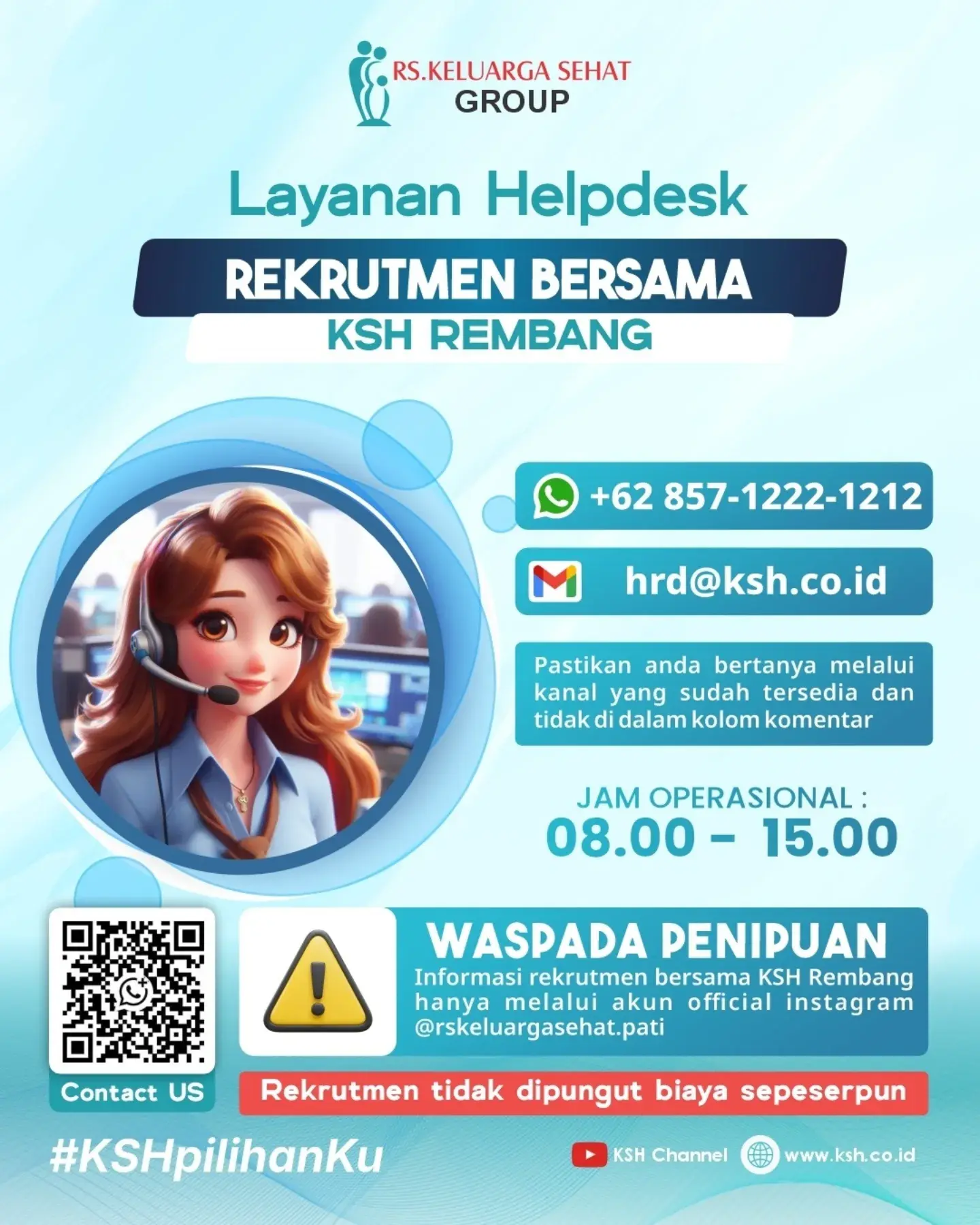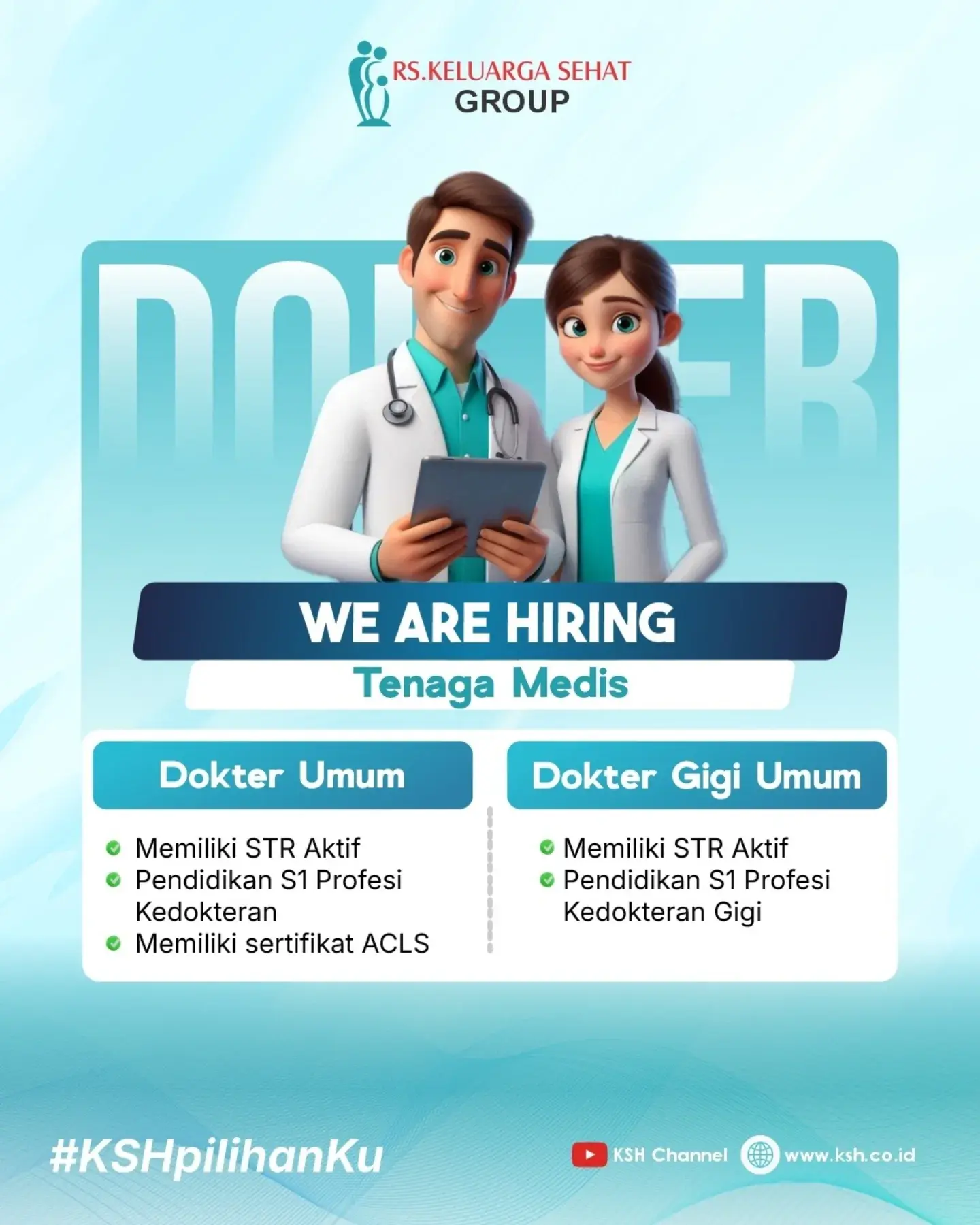Dibutuhkan Dokter Gigi untuk penempatan di RS Keluarga Sehat Rembang. Untuk lamaran silahkan kirim melalui email yang tertera.