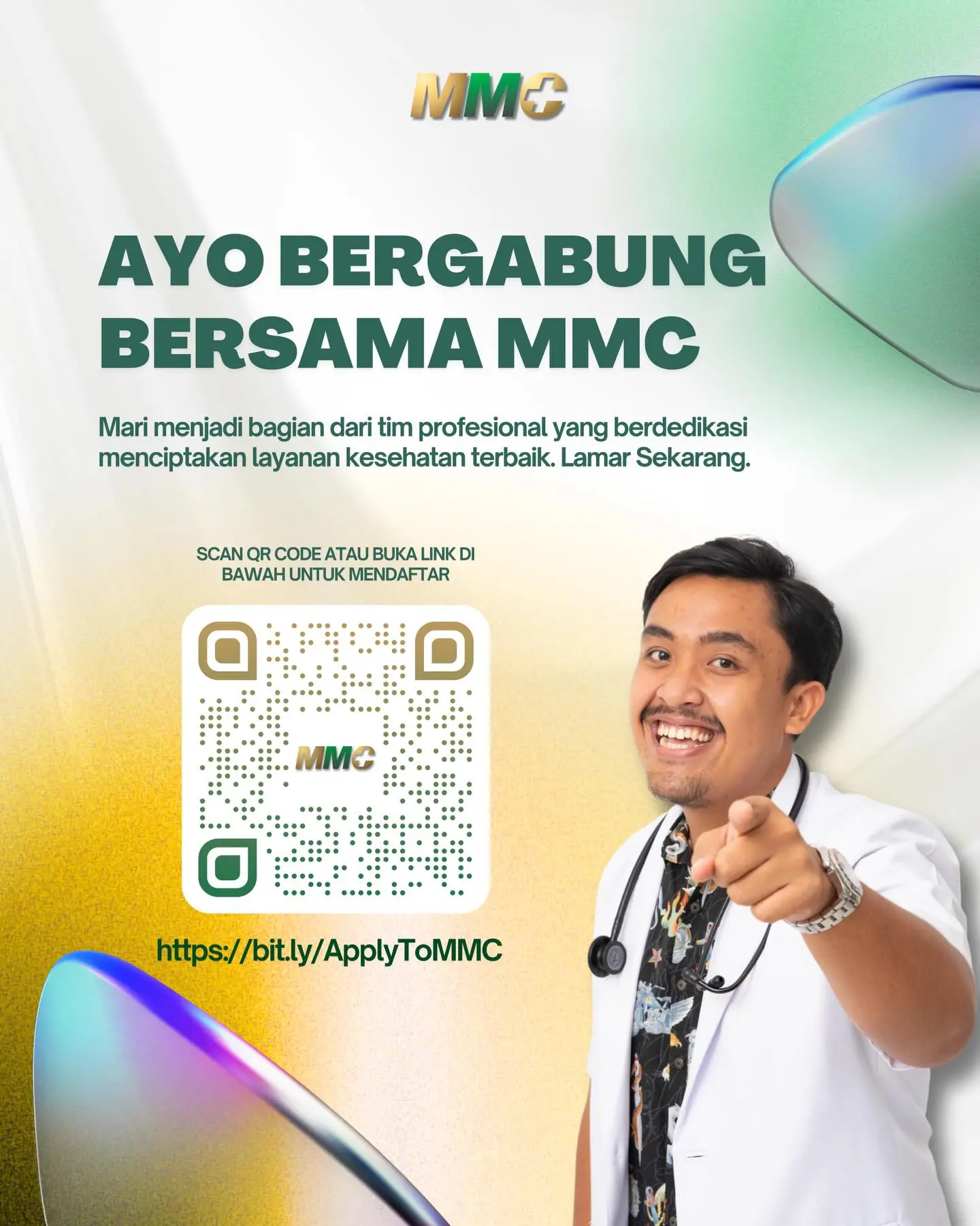 Dibutuhkan Perawat Gigi untuk penempatan di Klinik Utama MMC. Untuk lamaran silahkan kirim melalui link atau barcode yang tertera.