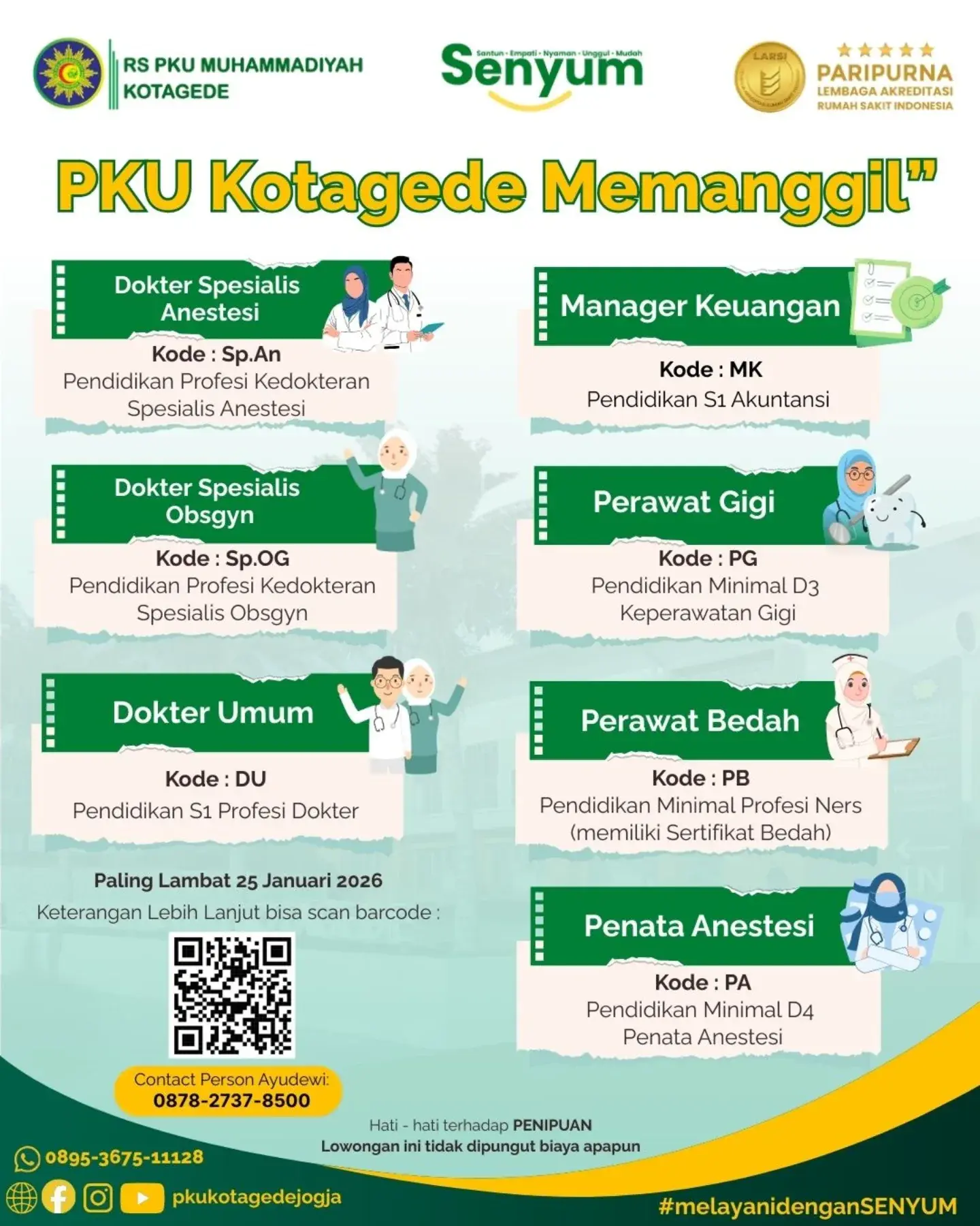 Dibutuhkan Perawat Gigi untuk penempatan di RS PKU Muhammadiyah Kotagede Yogyakarta. Untuk lamaran silahkan kirim melalui email yang tertera.