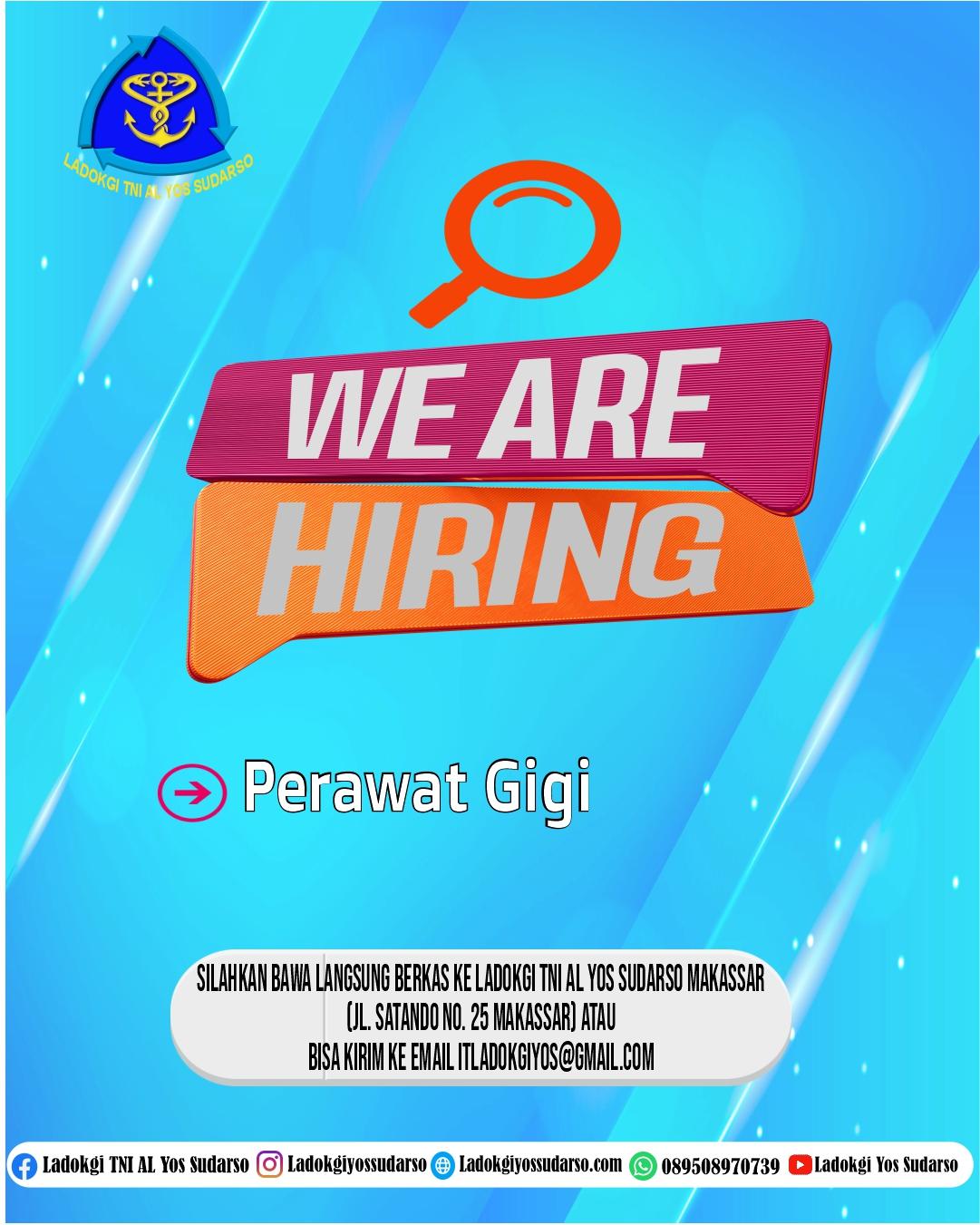 Dibutuhkan Perawat Gigi untuk penempatan di RS Gigi dan Mulut Ladokgi TNI AL Yos Sudarso. Untuk lamaran silahkan kirim melalui lokasi alamat yang tertera.