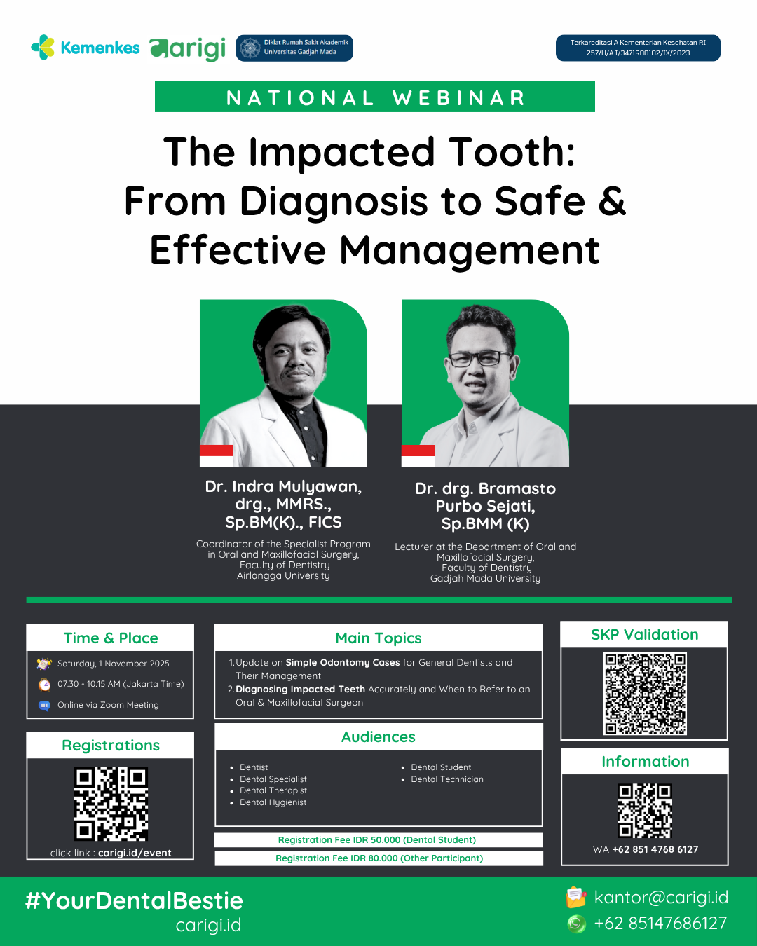 - drg. Bramasto Purbo Sejati, Sp.BMM (K) – Diagnosing Impacted Teeth Accurately and When to Refer to an Oral & Maxillofacial Surgeon